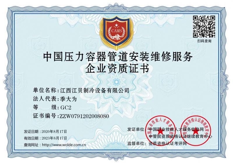 中國壓力容器管道安裝維修服務(wù)企業(yè)資質(zhì)證書、等級 一級  、證書編號、  ZZW0791202008080